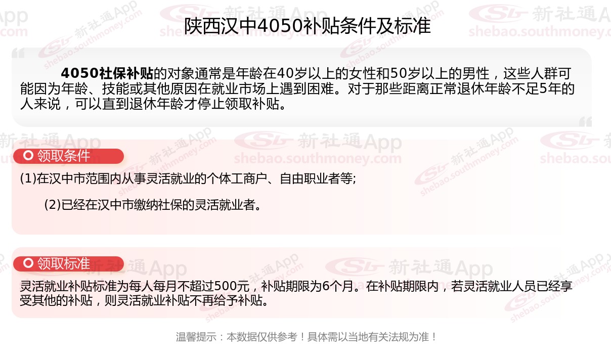 一、2025年陕西汉中灵活就业4050社保补贴标准和条件是什么