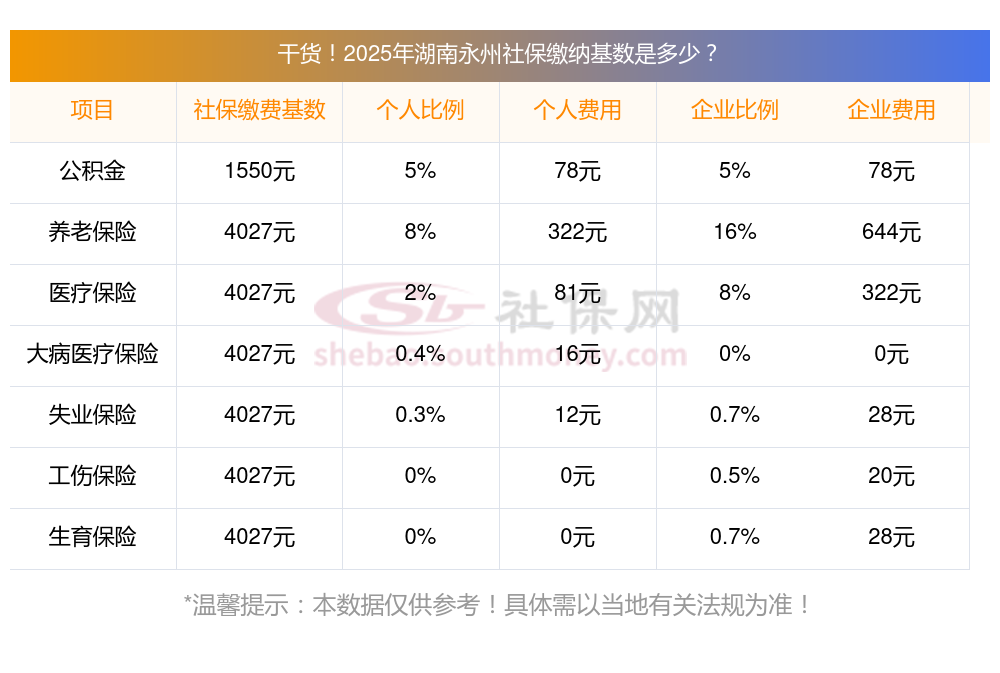 湖南永州的社保缴费情况,依据2025年最新的缴费标准,我们可以详细地进行如下说明。这些标准是根据新社通app-社保缴费查询工具提供的数据整理得出的: