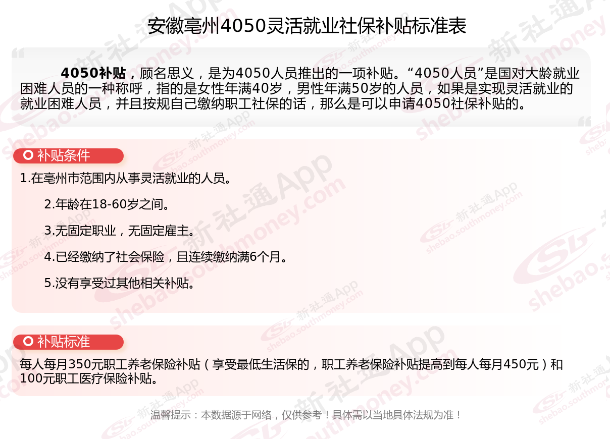 二、2025年安徽亳州4050社保补贴标准及条件(4050社保补贴多少钱?)