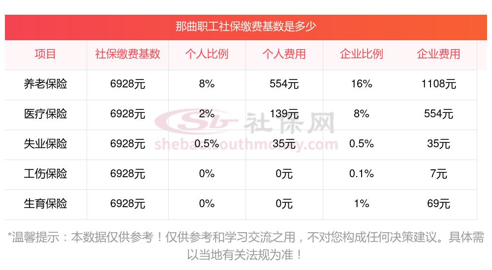 五险最新缴费标准,那曲社保个人缴纳多少钱?下表是那曲社保费用明细参考,根据新社通app-社保缴费查询工具提供的最新数据如下: