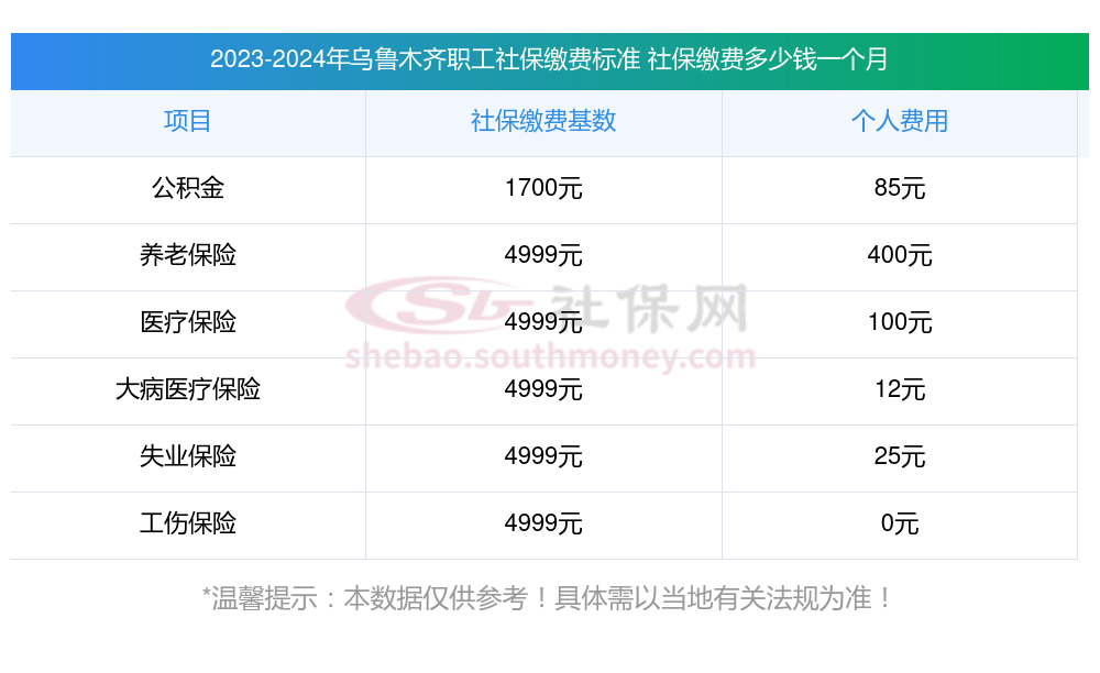 乌鲁木齐2025年社保缴费个人和公司各承担多少?下表是2025年乌鲁木齐社保费用明细参考,新社通app-社保缴费查询工具提供的最新数据如下: