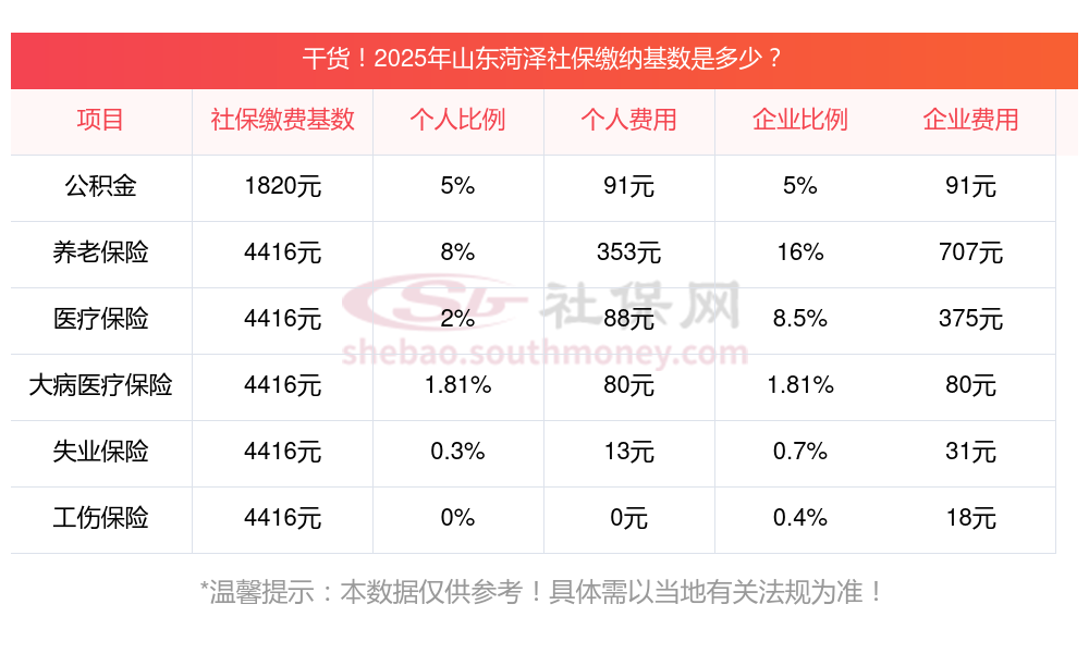 五险最新缴费标准,山东菏泽社保个人缴纳多少钱?下表是山东菏泽社保费用明细参考,根据新社通app-社保缴费查询工具提供的最新数据如下: