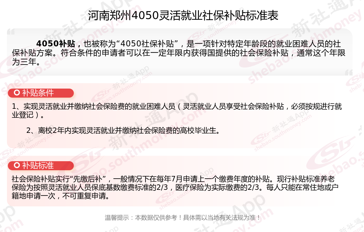 以上就是河南郑州4050灵活就业社保补贴的相关内容,欢迎关注新社通/下载新社通APP了解更多五险一金专业资讯。