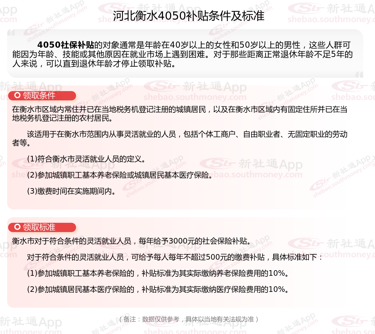 以上就是河北衡水4050灵活就业社保补贴的相关内容,欢迎关注新社通/下载新社通APP了解更多五险一金专业资讯。