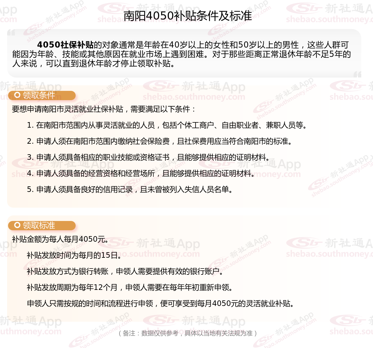 二、2025年南阳4050社保补贴标准及条件(4050社保补贴多少钱?)