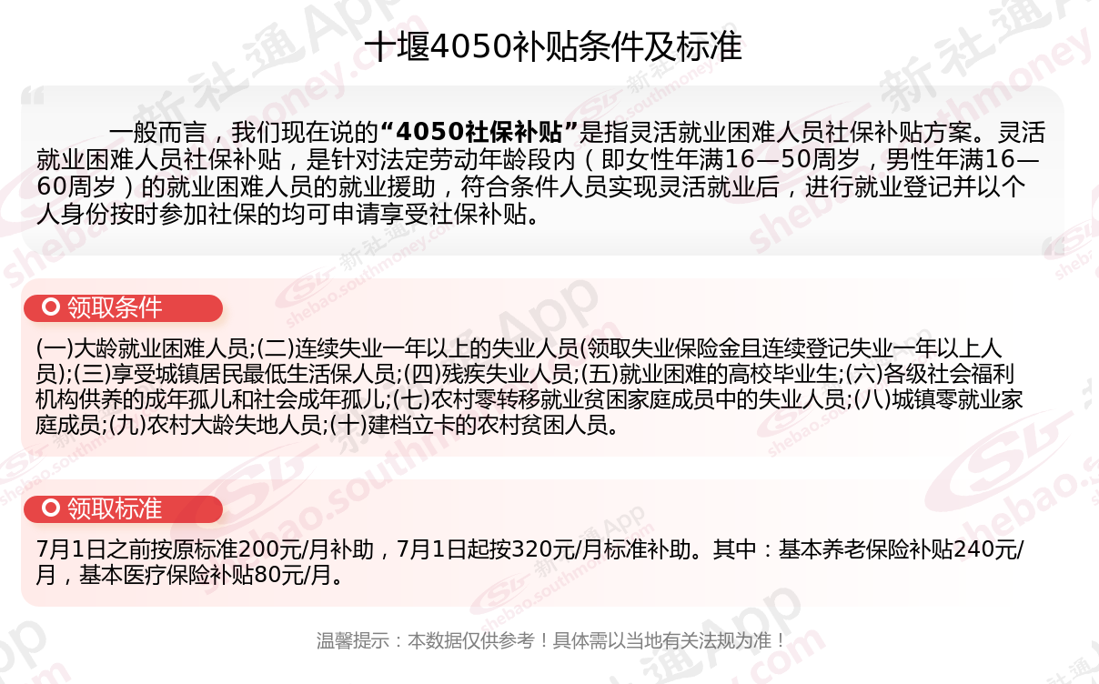 二、2025年十堰4050社保补贴标准是多少?条件是什么?