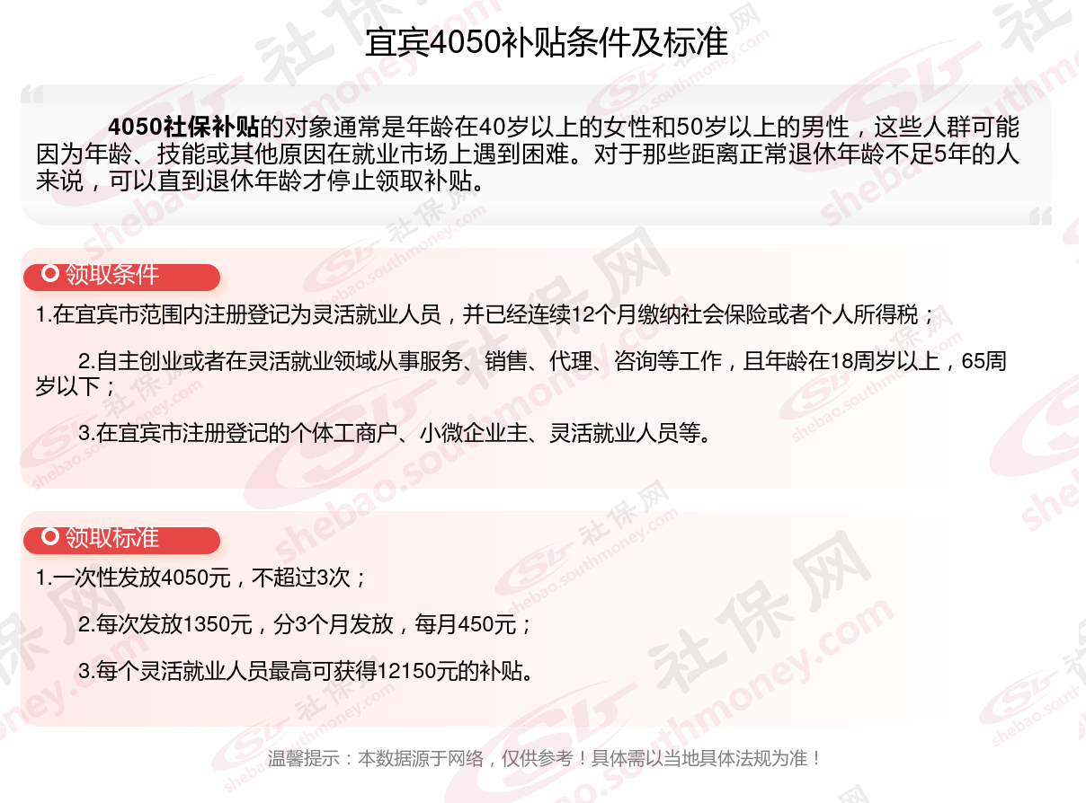 一、宜宾灵活就业4050社保补贴标准及条件是什么