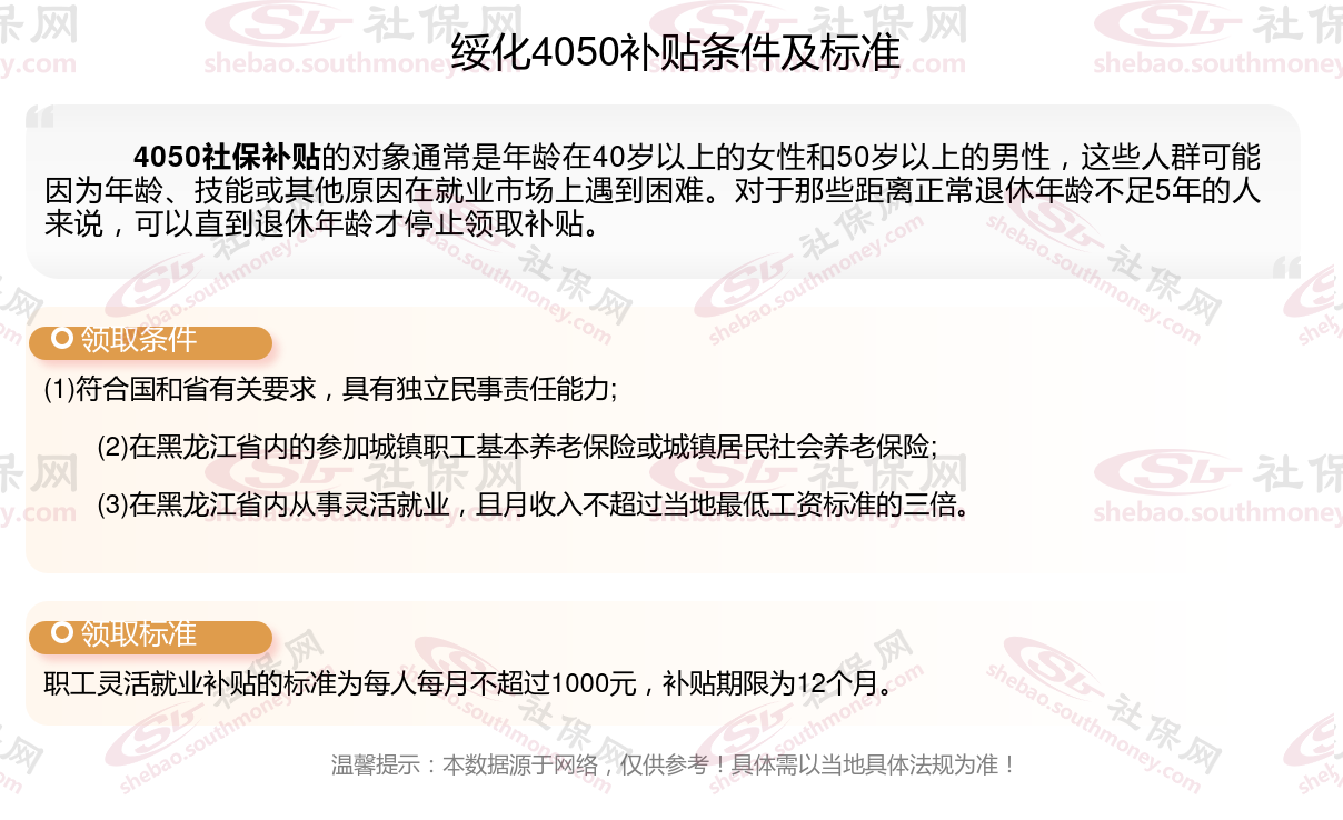 2024绥化灵活就业4050社保补贴是一项面向特定年龄段的就业困难人群的社会保险补贴。