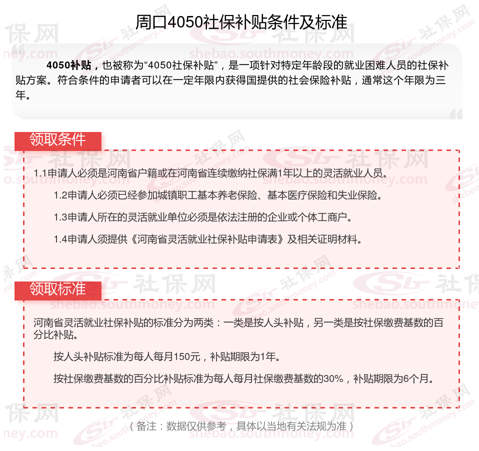 二、周口灵活就业4050社保补贴标准及条件是什么