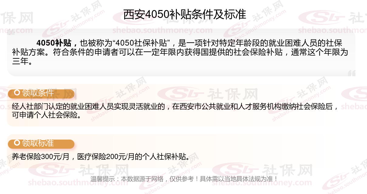 以上就是西安4050灵活就业社保补贴的相关内容,欢迎关注社保网了解更多五险一金专业资讯。