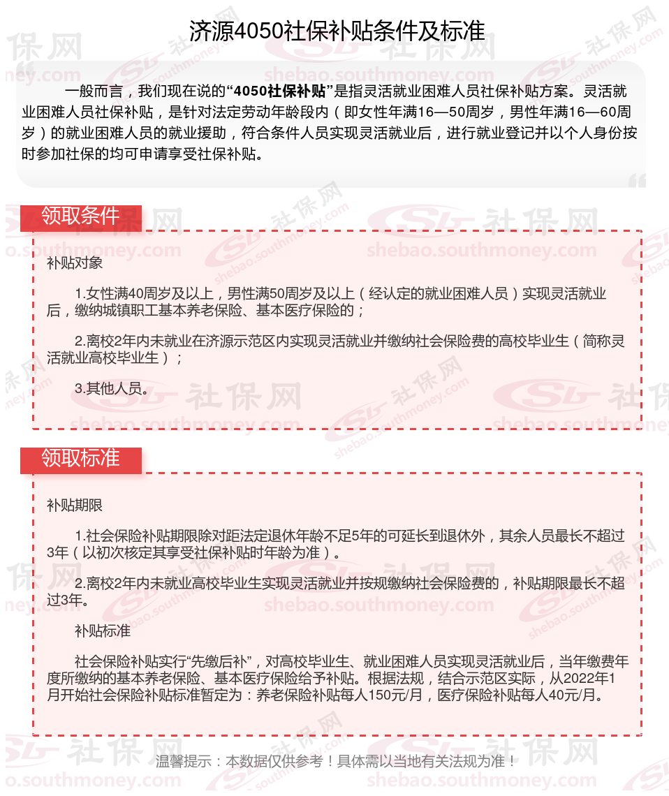 2024济源灵活就业4050社保补贴是一项面向特定年龄段的就业困难人群的社会保险补贴。
