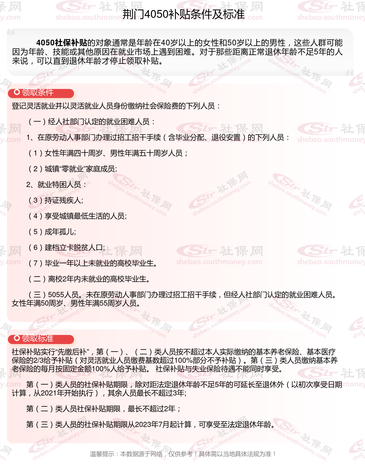 以上就是荆门4050灵活就业社保补贴的相关内容,欢迎关注社保网了解更多五险一金专业资讯。