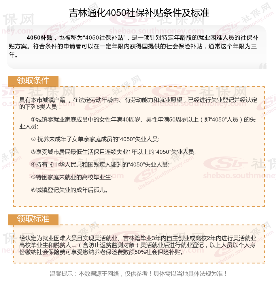 二、吉林通化灵活就业4050社保补贴标准及条件是什么