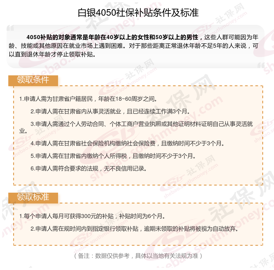 2024白银灵活就业4050社保补贴是一项面向特定年龄段的就业困难人群的社会保险补贴。