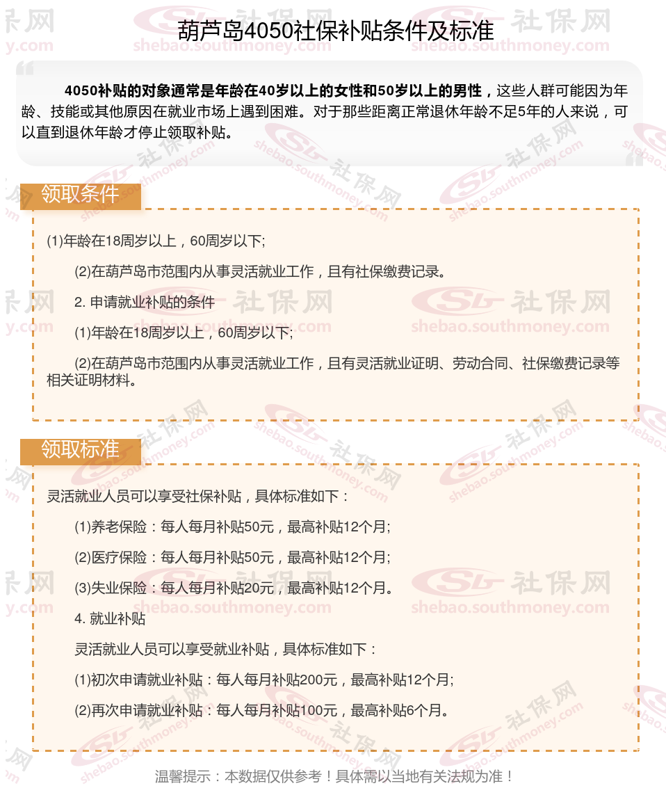 一、葫芦岛4050社保补贴标准及条件2023-2024年