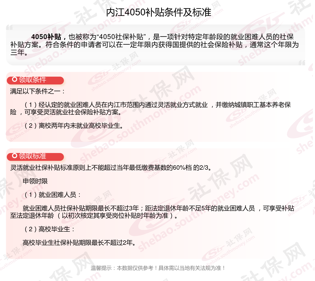 以上就是内江4050灵活就业社保补贴的相关内容,欢迎关注社保网了解更多五险一金专业资讯。
