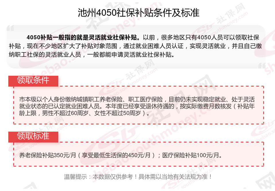 2024池州4050补贴主要针对的是年龄在40岁以上的女性和50岁以上的男性,这些人群通常因为年龄较大而面临就业困难。