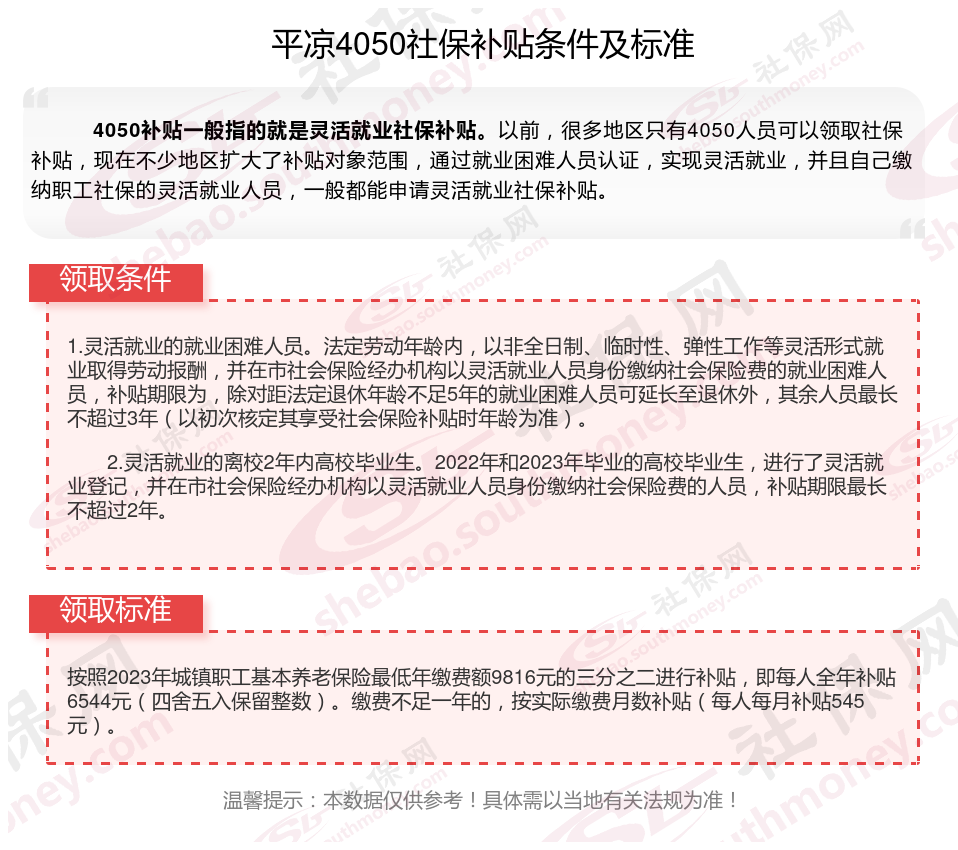 2024平凉灵活就业4050社保补贴是一项面向特定年龄段的就业困难人群的社会保险补贴。