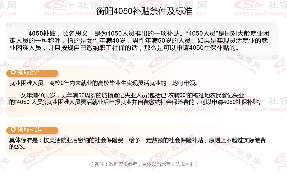 以上就是衡阳4050灵活就业社保补贴的相关内容,欢迎关注社保网了解更多五险一金专业资讯。
