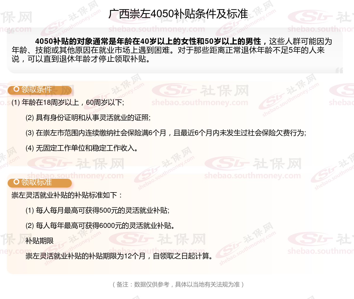 以上就是广西崇左4050灵活就业社保补贴的相关内容,欢迎关注社保网了解更多五险一金专业资讯。