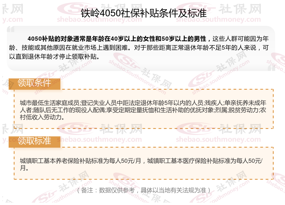 一、铁岭4050社保补贴标准及条件2023-2024年