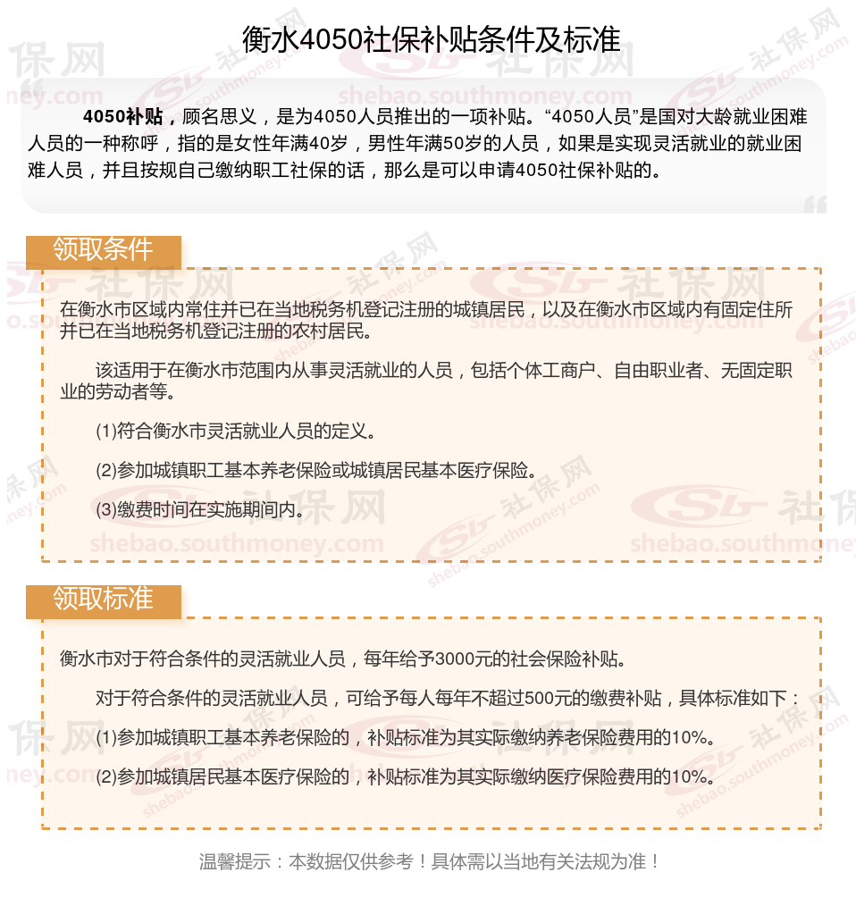 2024衡水灵活就业4050社保补贴是一项面向特定年龄段的就业困难人群的社会保险补贴。