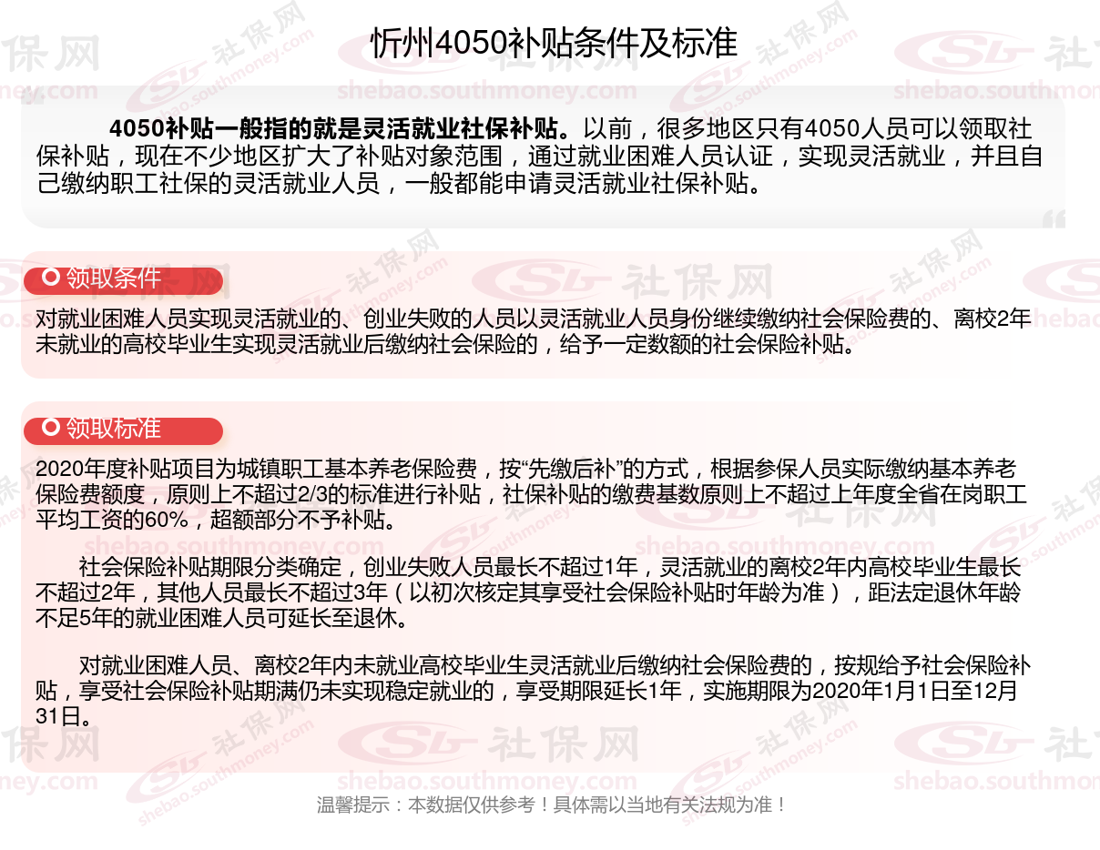 2024忻州灵活就业4050社保补贴是一项面向特定年龄段的就业困难人群的社会保险补贴。