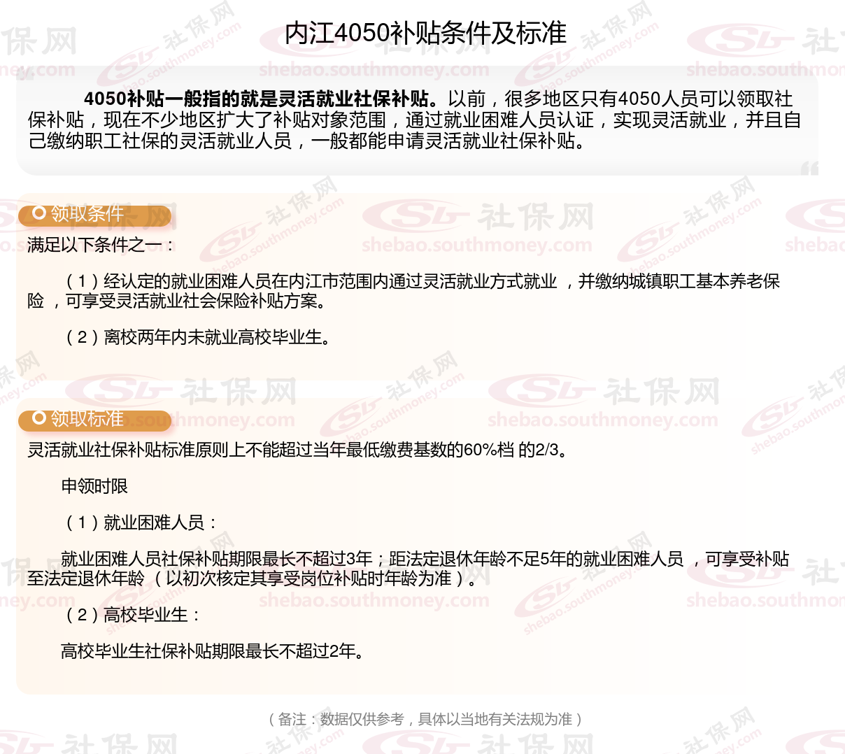2024内江灵活就业4050社保补贴是一项面向特定年龄段的就业困难人群的社会保险补贴。