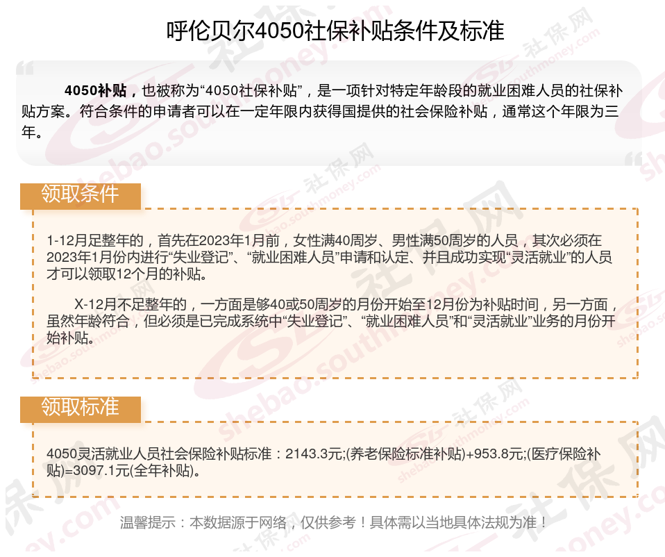 二、呼伦贝尔4050社保补贴标准及条件2023-2024年