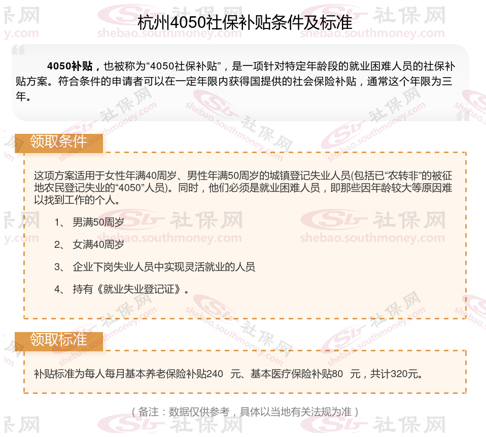2024杭州4050补贴主要针对的是年龄在40岁以上的女性和50岁以上的男性,这些人群通常因为年龄较大而面临就业困难。