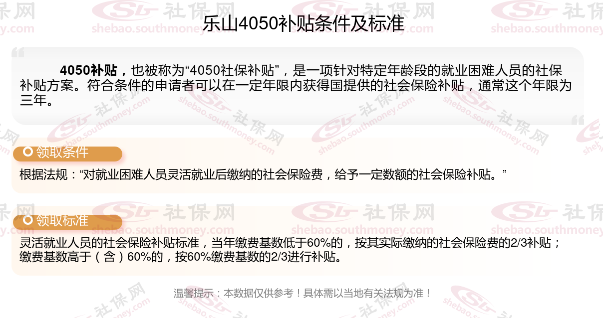 以上就是乐山4050灵活就业社保补贴的相关内容,欢迎关注社保网了解更多五险一金专业资讯。
