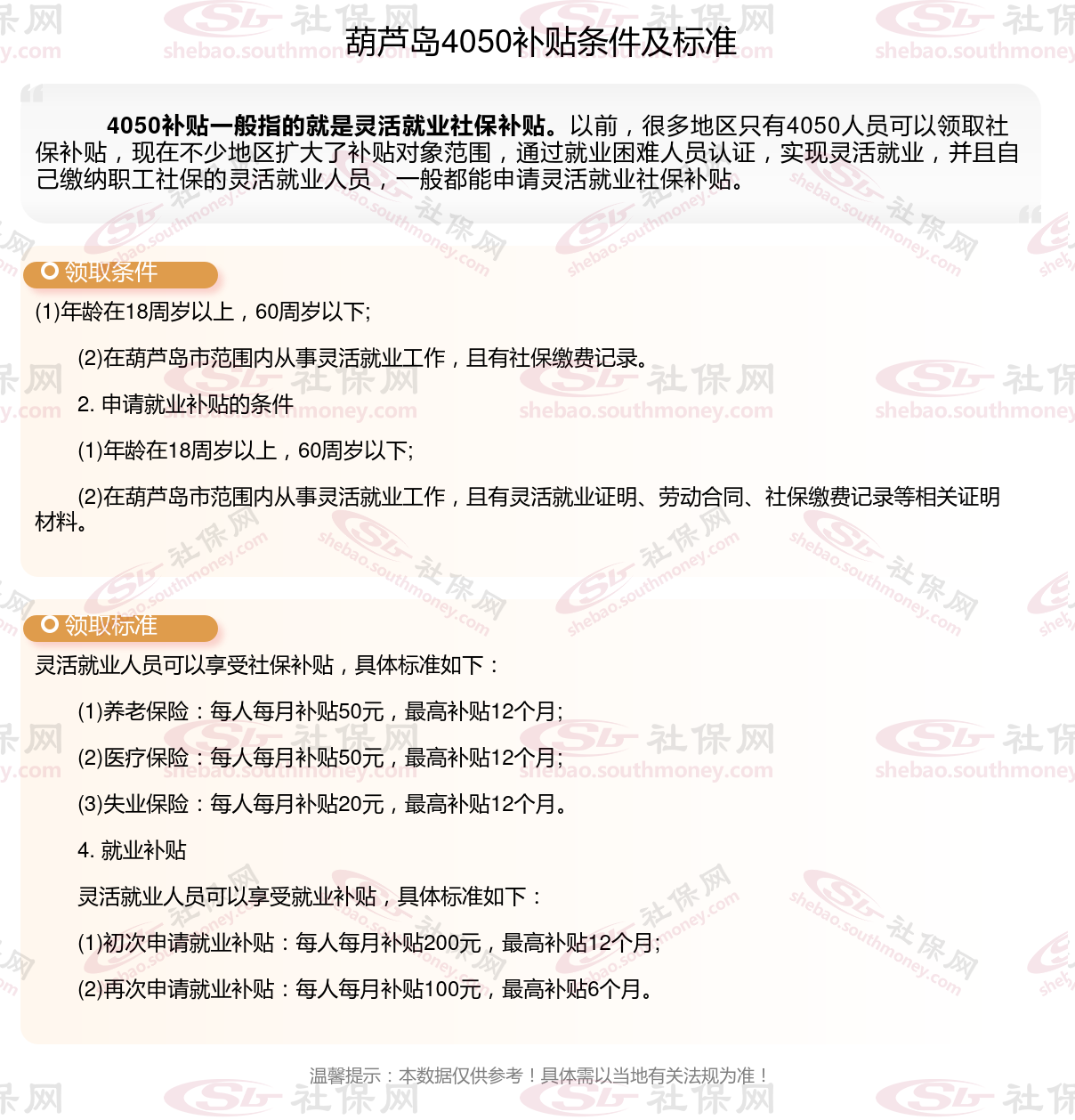 以上就是葫芦岛4050灵活就业社保补贴的相关内容,欢迎关注社保网了解更多五险一金专业资讯。