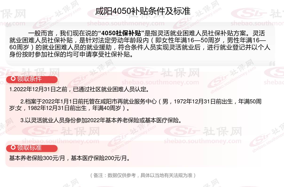 一、咸阳4050社保补贴标准及条件2023-2024年