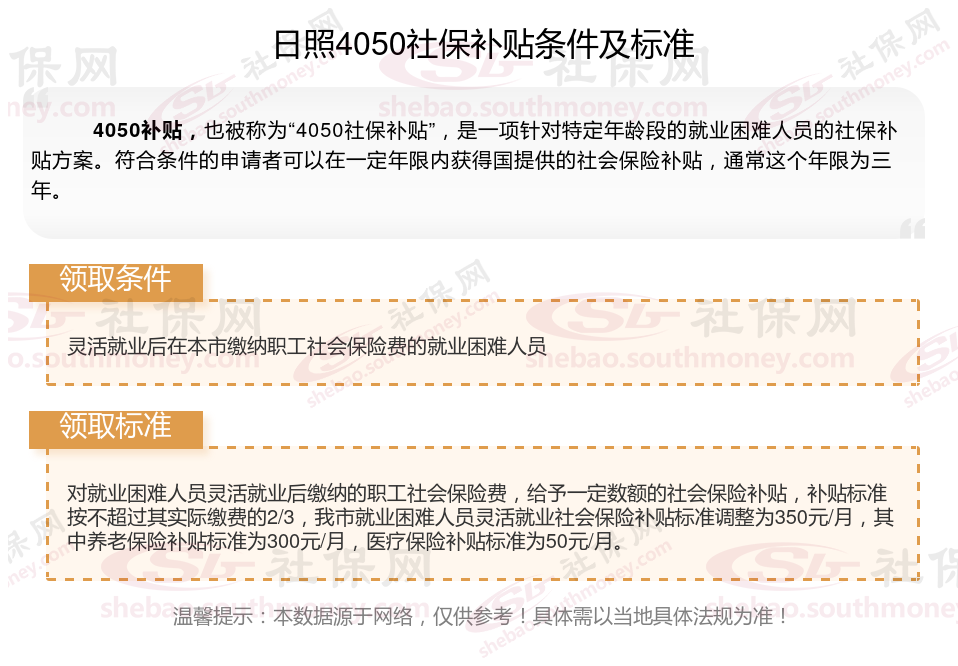 2024日照4050补贴主要针对的是年龄在40岁以上的女性和50岁以上的男性,这些人群通常因为年龄较大而面临就业困难。