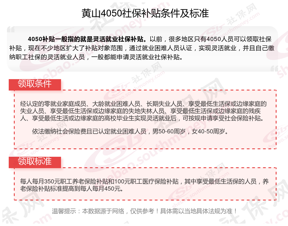 2024黄山灵活就业4050社保补贴是一项面向特定年龄段的就业困难人群的社会保险补贴。