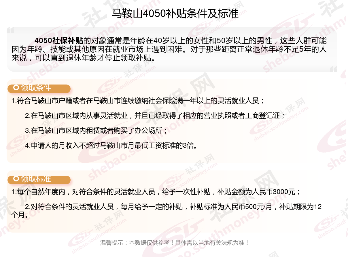 一、2023-2024年马鞍山灵活就业4050社保补贴标准和条件是什么