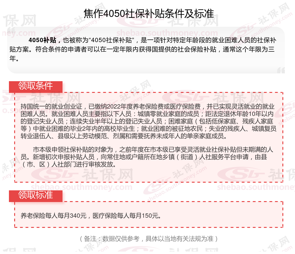 一、2023-2024年焦作灵活就业4050社保补贴标准和条件是什么