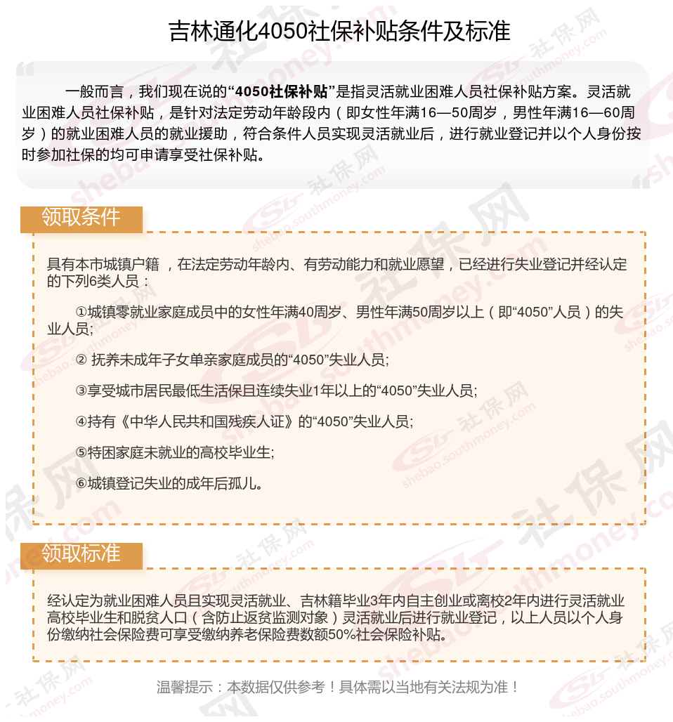 一、吉林通化4050社保补贴标准及条件2023-2024年