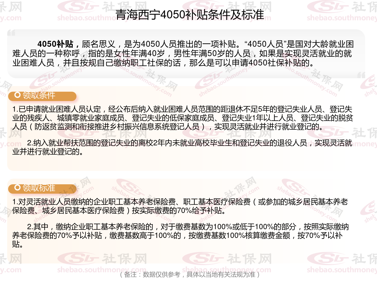2024青海西宁4050补贴主要针对的是年龄在40岁以上的女性和50岁以上的男性,这些人群通常因为年龄较大而面临就业困难。
