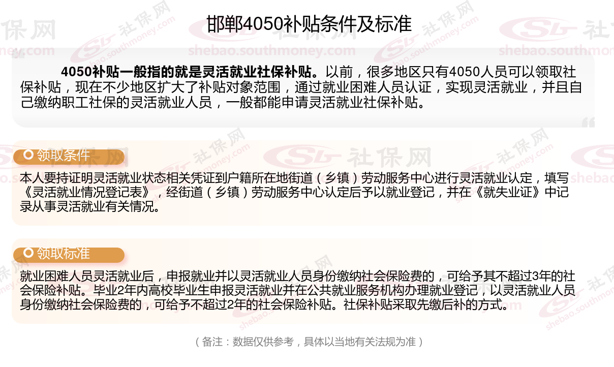 一、邯郸4050社保补贴标准及条件2023-2024年