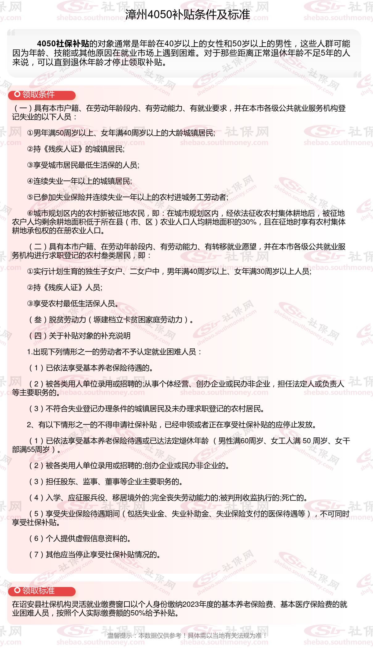 二、漳州4050社保补贴标准及条件2023-2024年