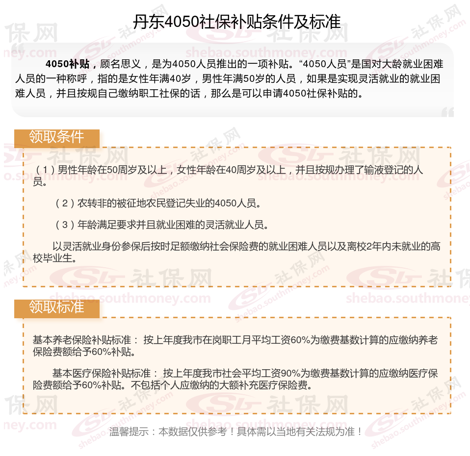 一、丹东4050社保补贴标准及条件2023-2024年