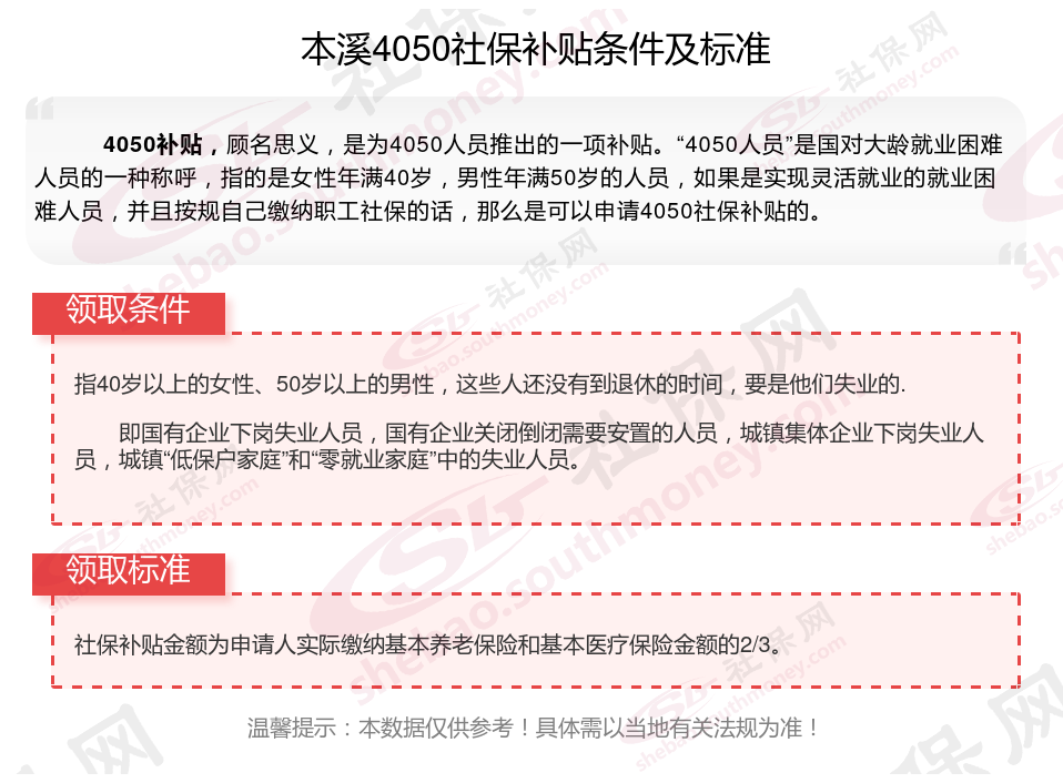 2024本溪4050补贴主要针对的是年龄在40岁以上的女性和50岁以上的男性,这些人群通常因为年龄较大而面临就业困难。