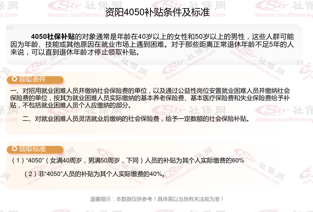2024资阳灵活就业4050社保补贴是一项面向特定年龄段的就业困难人群的社会保险补贴。