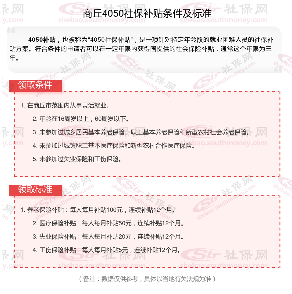 二、商丘4050社保补贴标准及条件2023-2024年