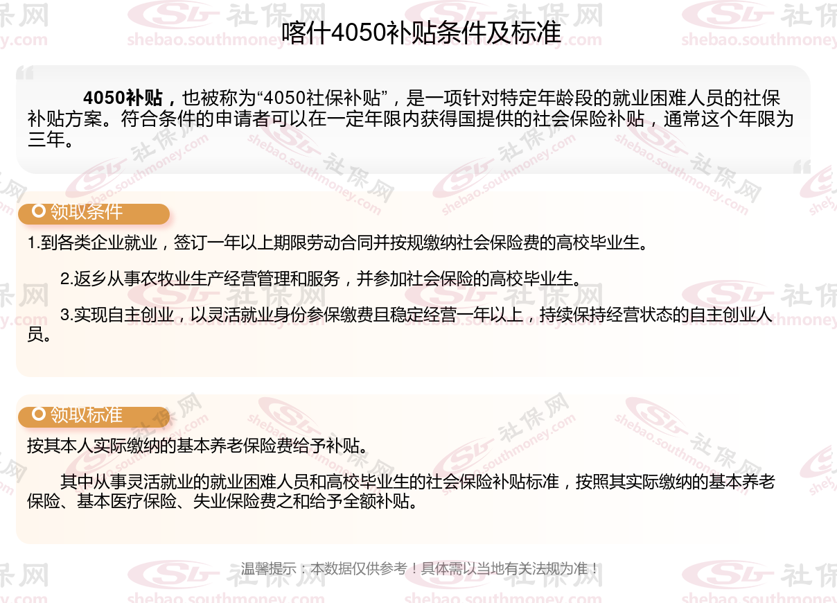 二、喀什灵活就业4050社保补贴标准及条件是什么