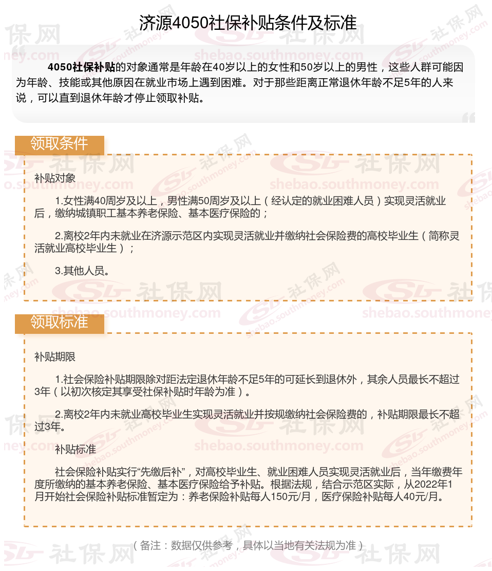 一、济源4050社保补贴标准及条件2023-2024年