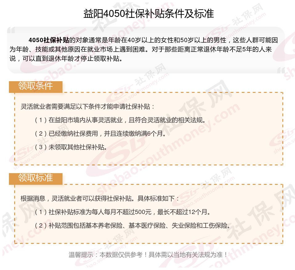 2024益阳灵活就业4050社保补贴是一项面向特定年龄段的就业困难人群的社会保险补贴。