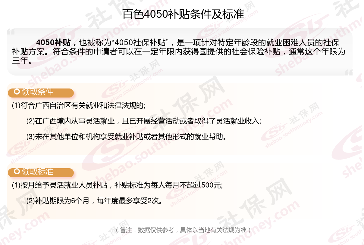 一、2023-2024年百色灵活就业4050社保补贴标准和条件是什么