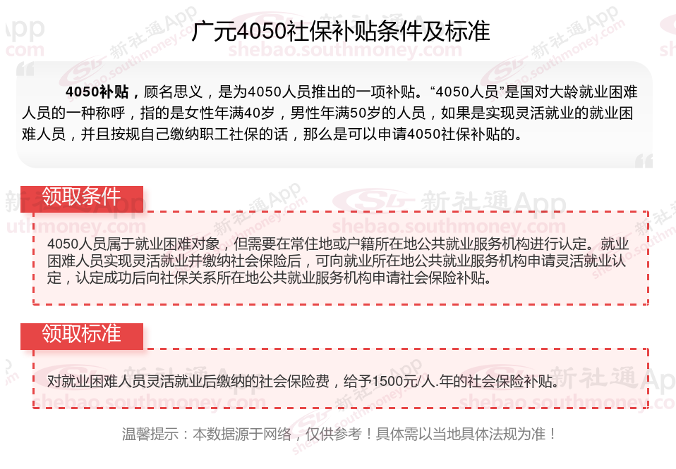 2024广元4050补贴主要针对的是年龄在40岁以上的女性和50岁以上的男性,这些人群通常因为年龄较大而面临就业困难。